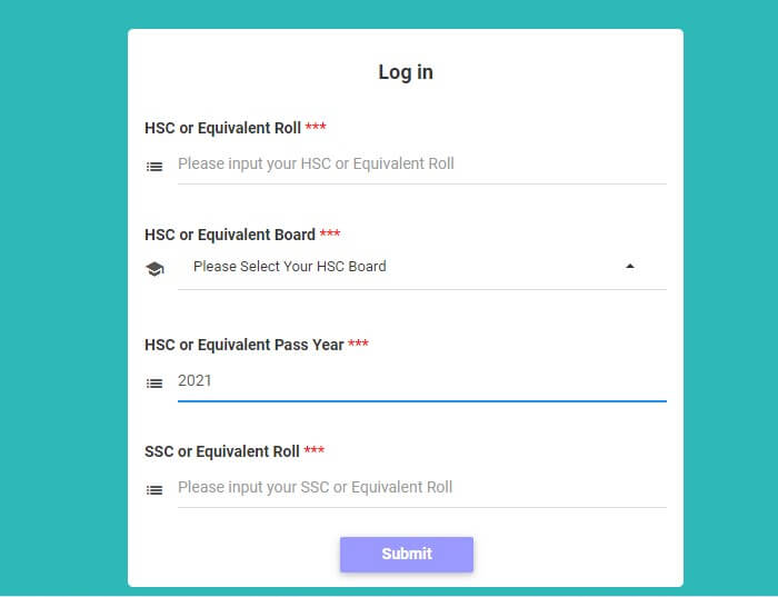 - ৩য় ধাপ: একবার আপনার স্ক্রিনে লগইন পৃষ্ঠাটি উপস্থিত হলে, আপনাকে প্রথম বাক্সে HSC রোল নম্বর টাইপ করতে হবে।